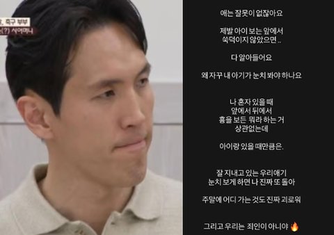 이씨는 "제발 아이 보는 앞에서 쑥덕이지 않았으면. (딸도) 다 알아듣는다. 왜 자꾸 내 아기가 눈치 봐야 하나"라며 "나 혼자 있을 때 앞에서 뒤에서 흉을 보든 뭐라 하는 거 상관없다. 아이랑 있을 때만큼은 (삼가달라)"고 적었다.