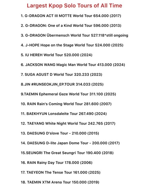 진심 20년차에 이게맞음? 8년만에 투어도는데 또 1위 갱신함 원래도 솔투 규모 1,2위가 지디였는데 ㅋㅋㅋ신기하고 또 신기함