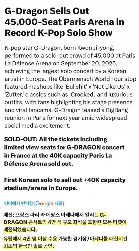 프랑스 라데팡스 아레나 4만5천까지 들어간거 대박이다…K팝 솔로가수 최초로 최다관객수 동원ㄷㄷㄷ