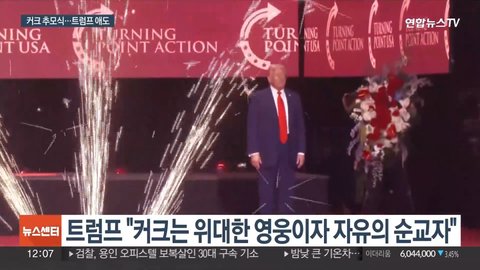 [퍼온 글] 트럼프, 커크 추모식서 "순교자…한국 등 세계가 지지" - 연합뉴스TV 정호윤 기자 (2025.09.22(월) 오후 12:54)