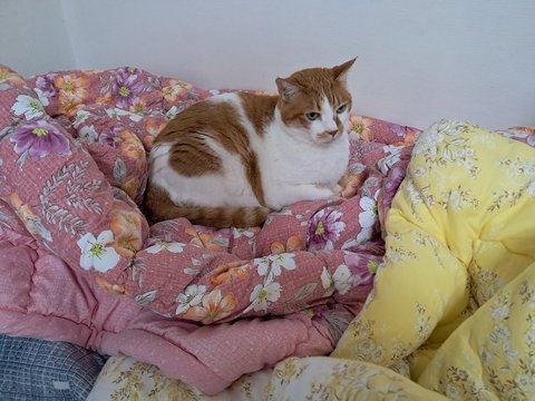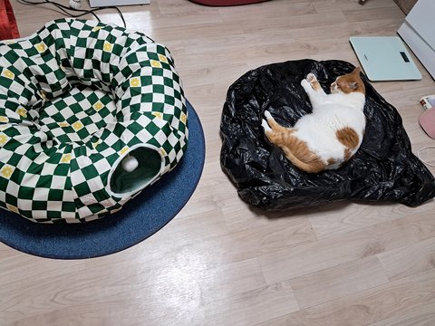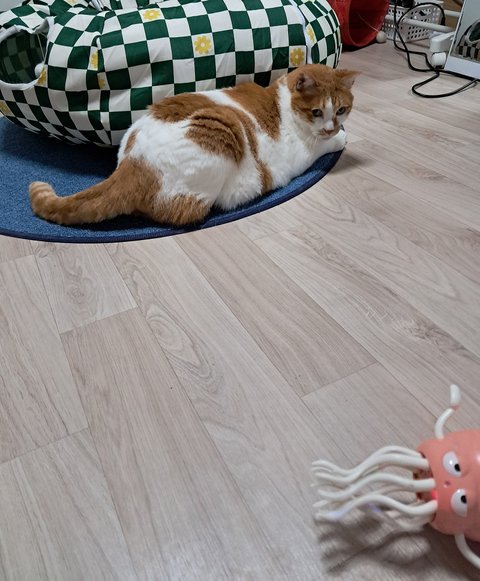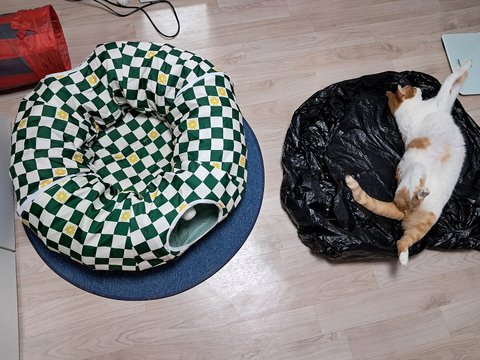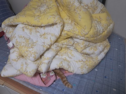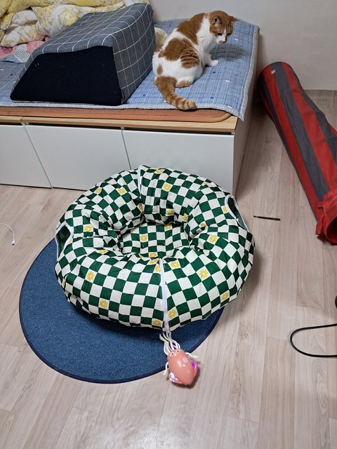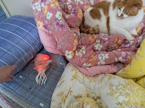 혹여나 가지고 놀까 싶어 이불위에 올려봄.