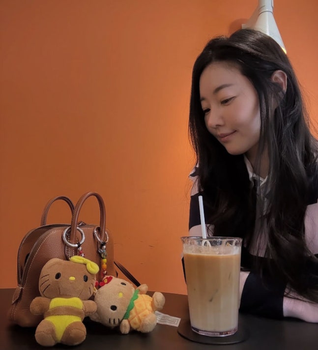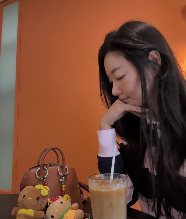 사진 속 김사랑은 카페에 있다.