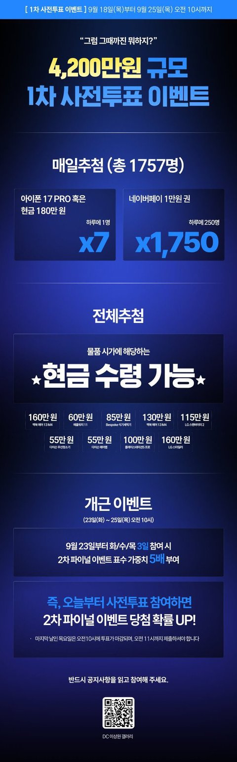4200만원 상당 총 1866개의 상품 = 매일매일 450만원 고가 상품 현금 수령 가능! 복수 투표 가중치 O! 당첨 확률 증가! 오늘부터 3일 출석 시 파이널 한 표 x 5배