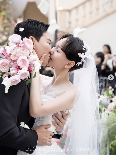 이유영은 23일 오후 자신의 SNS에 “사랑스러운 부케 행복한 신부”라는 멘트와 함께 두 장의 사진을 게재했다. 결혼식에서 환하게 웃으며 신랑과 입을 맞추는 모습이 담긴 사진이었다.