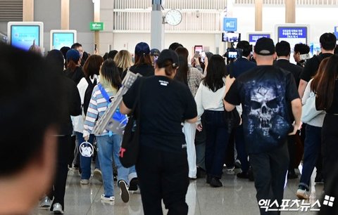현진을 찍기 위해 많은 팬들이 출국장을 질주하고 있다.
