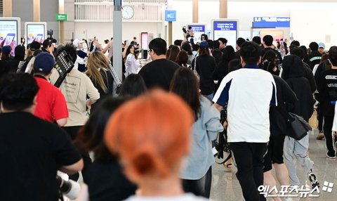 현진을 찍기 위해 많은 팬들이 출국장을 질주하고 있다.