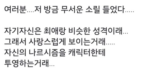 맞는거같늠 구옵 해찬이었고 현옵 유우시인데 해찬은 친한사람들이랑있을때 깐족대는 나같고 유우시는 모르는사람들이랑 있을때 얌전하고 스스로를 남들과는 다르다고 여기는 나같음..