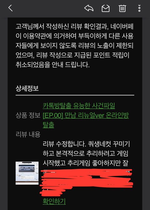 해당 업체에서 6천원 주고 방탈출 모바일 상품을 구매했는데 힌트보기를 누르면 정답만 계속 나오는 문제로 업체에 문의를 했었습니다