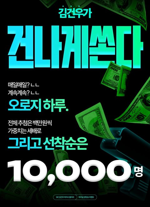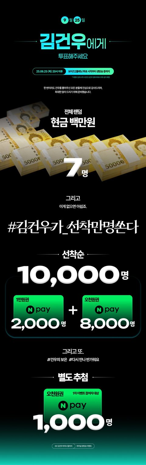 8천명 5천원 뿌린다는데 이정도면 걍 티켓팅 4층도 못잡는애들도 거저 받아가는수준이다;; 판녀들 안전하게 뭐라도 받아가고싶으면 김건우 뽑으면 될거같아