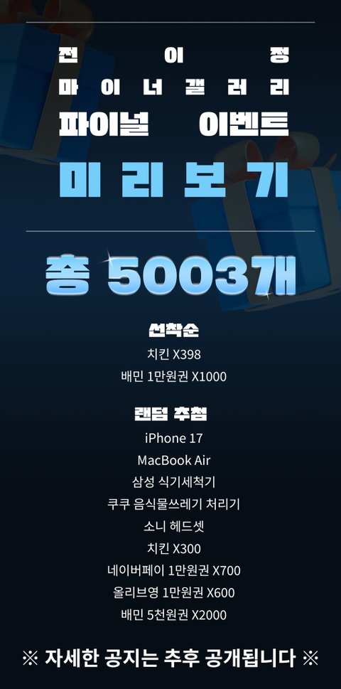 생방송 때 1표만 던져도 ㅡ> 선착순 1400명, 4000개 상당 상품 응모 완료