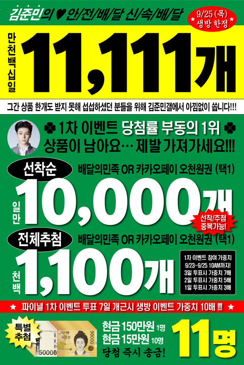전체추첨도 1100명이고 11명은 현금 바로송금해준대