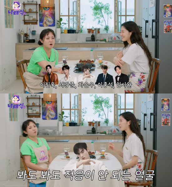 배우 박규영 편/유튜브 채널 '나래식'이에 박나래는 "그렇긴 하다. 차은우 씨 데뷔 초 시절에 같이 웹 예능을 찍었다. 둘이 얼굴을 마주 보고 있는 걸 찍었는데 '뭐지' 싶더라"라고 당시를 떠올렸다.