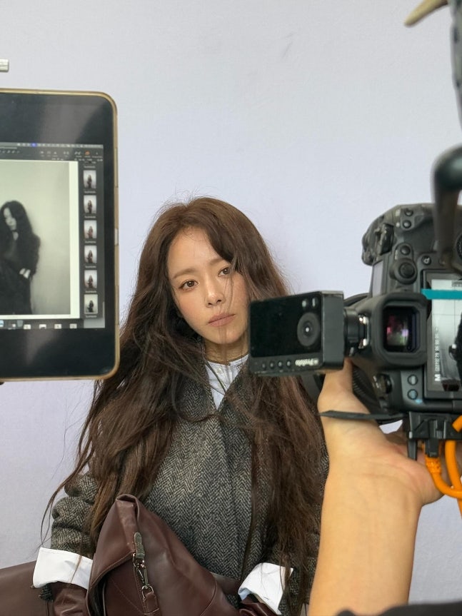 배우 한지민은 지난 24일 매거진 더블유 코리아와 진행한 화보 촬영 현장 비하인드 컷을 공개했다.