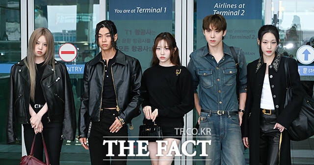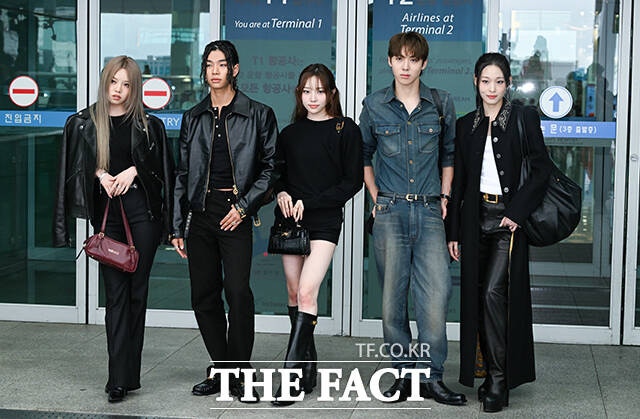 그룹 올데이 프로젝트(ALLDAY PROJECT)의 베일리와 타잔, 영서, 우찬, 애니(왼쪽부터)가 25일 오전 해외 일정 참석 차 인천 중구 인천국제공항을 통해 이탈리아 밀라노로 출국하고 있다. /인천국제공항=서예원 기자