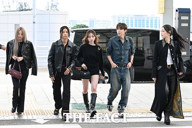 그룹 올데이 프로젝트(ALLDAY PROJECT)의 베일리와 타잔, 영서, 우찬, 애니(왼쪽부터)가 25일 오전 해외 일정 참석 차 인천 중구 인천국제공항을 통해 이탈리아 밀라노로 출국하고 있다.