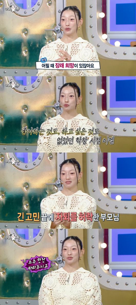 이날 방송에서 이엘은 “어릴 때는 다들 꿈이 있고 장래 희망이 있다. 나는 중고등학교 다니면서 아무생각이 없어지는 거다. 공부도 그냥, 좋아하는 것도, 하고 싶은 것도 없고 학교 가라고 하니까 가고, 끝나고 집에 가라고 하니까 갔다”라고 말문을 열었다.