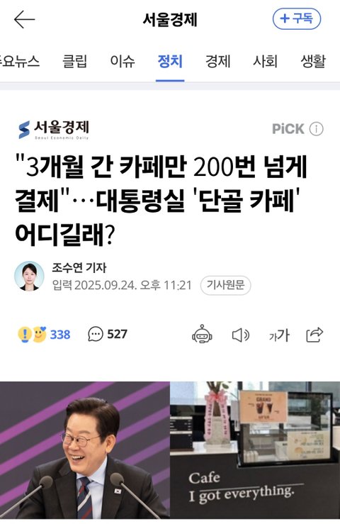 3개월간 카페에 대통령실 많은 인원이 약 100만원 정도 쓴거네ㅋㅋㅋ 검소한 정부네 한달에 약 33만원