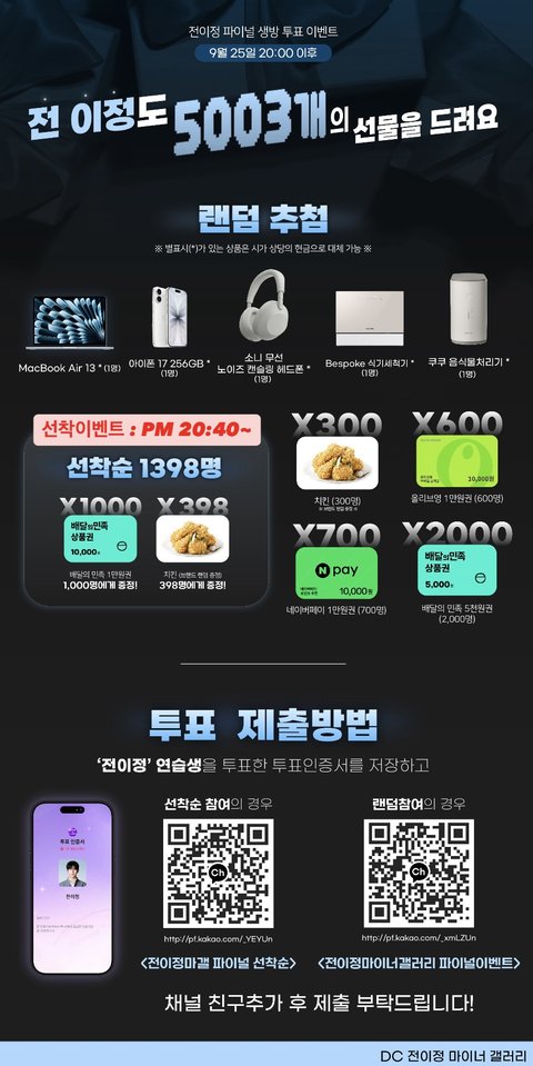 투표하고 응모만 하면 50프로 확률도 당첨 가능
