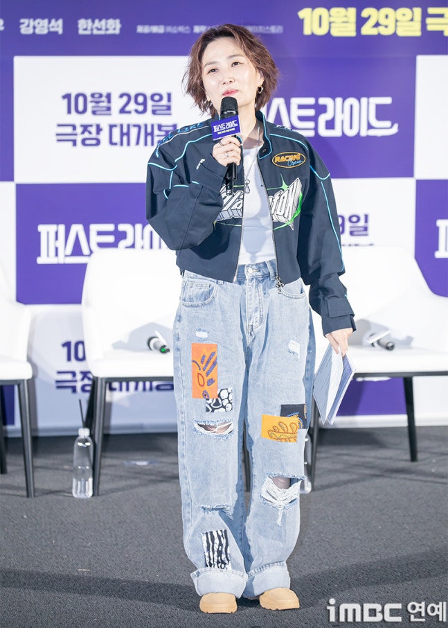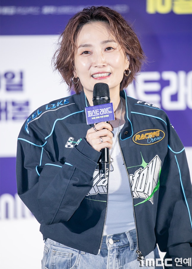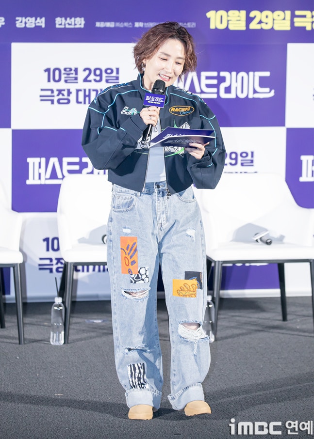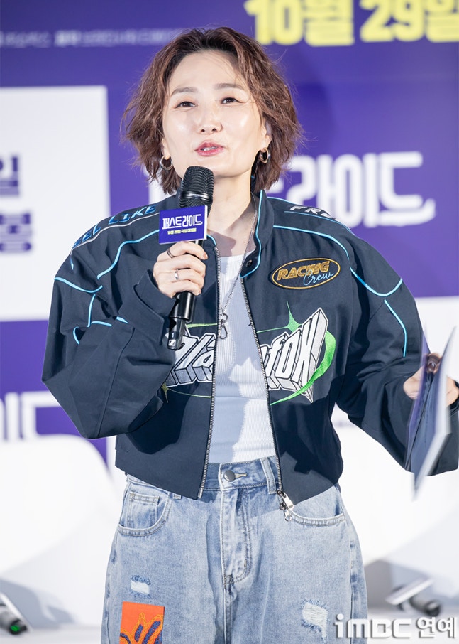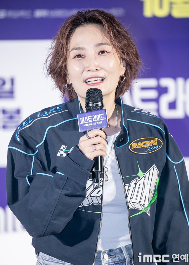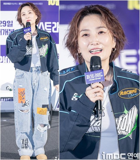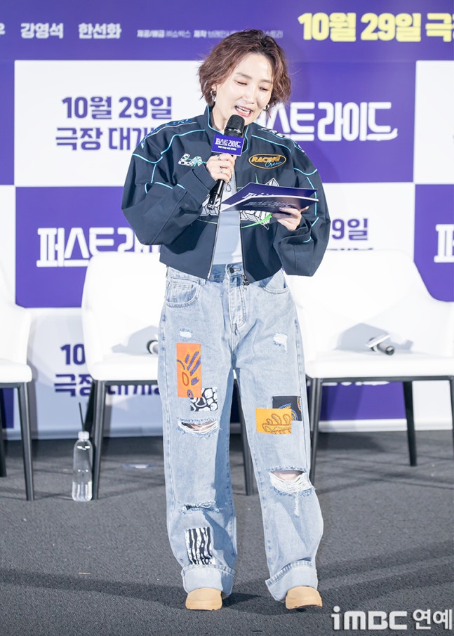 MC 박경림이 25일 오전 서울 용산CGV에서 열린 영화 ‘퍼스트 라이드’ 제작보고회에 참석해 진행을 하고 있다.