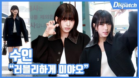 이날 수인은 블랙 워크 재킷에 스커트를 매치해 인형 같은 자태를 뽐냈다.