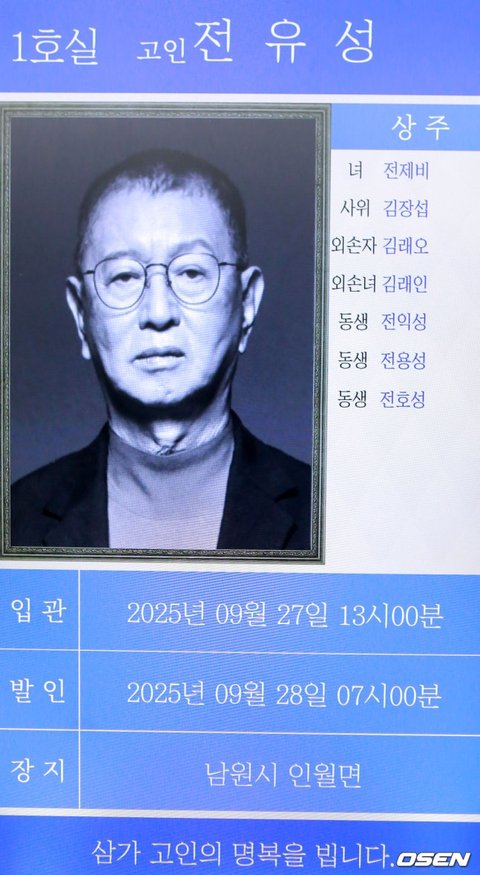 [OSEN=사진팀] 25일 폐기흉 증세 악화로 세상을 떠난 개그맨 전유성의 빈소가 서울아산병원에 마련됐다. 향년 76세.