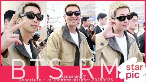 그룹 방탄소년단 RM이 보테가베네타 패션쇼 참석 차 26일 오전 인천국제공항을 통해 출국하고 있다. 2025.09.26