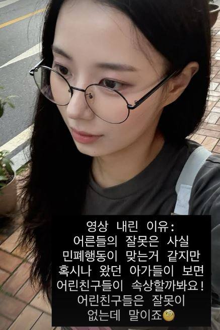 논란이 커진 탓인지, 최연수는 해당 게시글을 삭제했다. 그러면서 "영상 내린 이유: 어른들의 잘못은 사실 민폐 행동이 맞는 거 같지만 혹시나 왔던 아가들이 보면 어린 친구들이 속상할까봐요! 어린 친구들은 잘못이 없는데 말이죠"라고 삭제 이유를 설명했다.