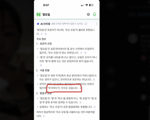 틱톡보다가 류라이 영상이 떠서 보는데 류라이 영상 자막 안에 몇요일이라는 자막이 뜬 거아무 생각 없이 보다가 댓글창 봤는데'몇요일이 뭐임? 무슨 요일로 써야지 하나부터 열까지 알려줘야 되냐(웃음이모티콘)' 이라고 써있었음진짜 보자마자 처음 든 생각? 그냥 ?????? 이거 였음 나는 친구들끼리 많이 쓰니까..그리고 답글 있던데 보니까 증거라면서 내놓은 사진 보니까 ai가 분석해서 낸 자료였음..(사진첨부해드림)원래 다들 친구들이랑 얘기하다가 무슨 요일인지 까먹으면"지금 몇요일이야?" 라고 하지 않음..? 전라도 사투리라고는 하는데 나는 수도권 사람인데도 쓰거든진짜 몇요일이라고 쓰는 게 무식한 거야?