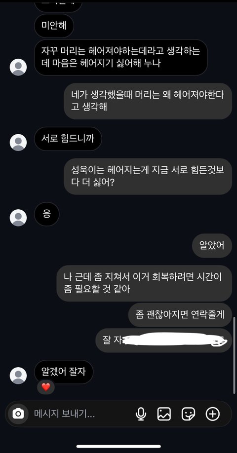 이거 때문에 서운한것도있고 다른것들도 많아서 어제 직접 만나서 이별통보했거든