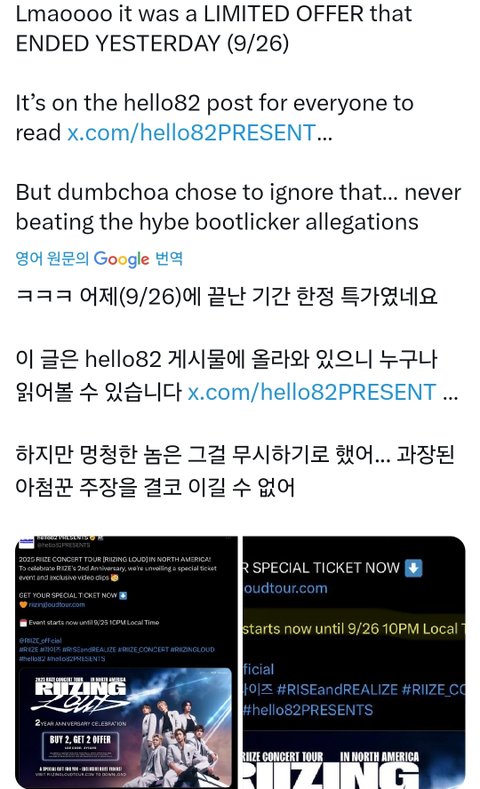 라이즈 미국 콘서트 티켓팅 부진으로 2+2 무료티켓 뿌림