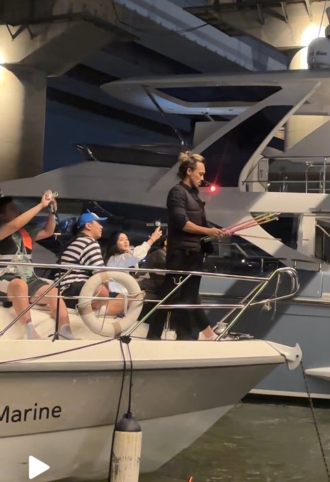 같은 무리인지 옆에 배에선 개인 불꽃놀이에 불을 붙이더니 하늘로 쏘기 시작함 수상통제팀에서 그만하라고 말하지만 멈추지 않음