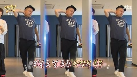 연습을 시작하며 강호동은 학습 의지가 불타올랐다. 50대도 성장할 수 있는 걸 보여주겠다는 강호동은 배를 살짝 보여가며 춤을 췄고 신동은 "유아기다. 젖병 뗐다"며 흡족해했다.