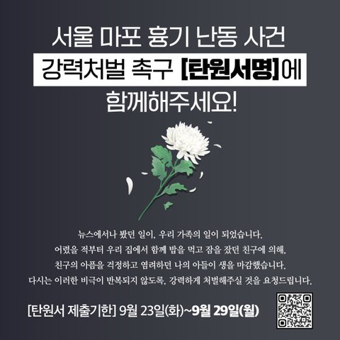 [서명] 마포 흉기 난동 사건 강력처벌 촉구 탄원서명에 함께해주세요.