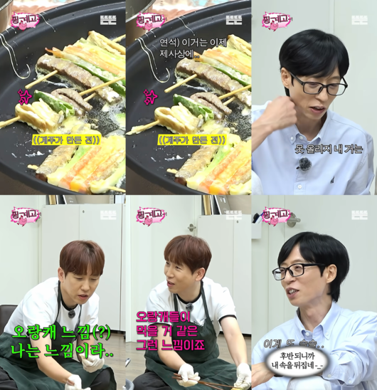 뿐만 아니라 추석을 맞이해 부침개를 굽던 이들은 유재석이 만든 요리를 보고 웃었고, 유재석도 “내 건 제사상에 못 올리지”라고 인정했다. 남창희는 “오랑캐들이 먹을 거 같은 그런 느낌”이라고 표현해 유재석의 속을 뒤집어 놨다.