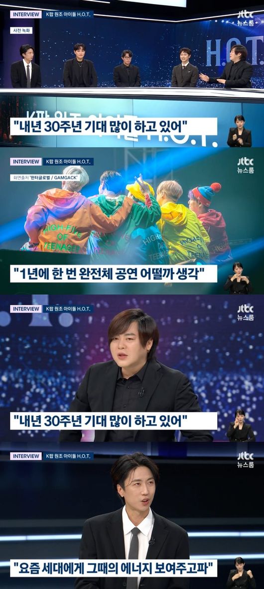 H.O.T.는 28일 오후에 방송된 종합편성채널 JTBC ‘뉴스룸’에 출연해 내년 데뷔 30주년을 준비하는 마음가짐을 언급했다.