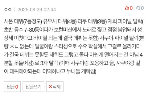 다들 데뷔 할까 이라는 글에 댓글썼눈데 ㅈㄴ열심히해서그런지 뭔가 아까워서 글올림 반박받는다