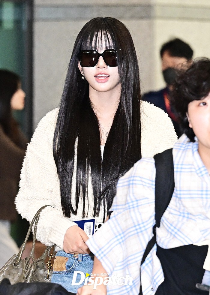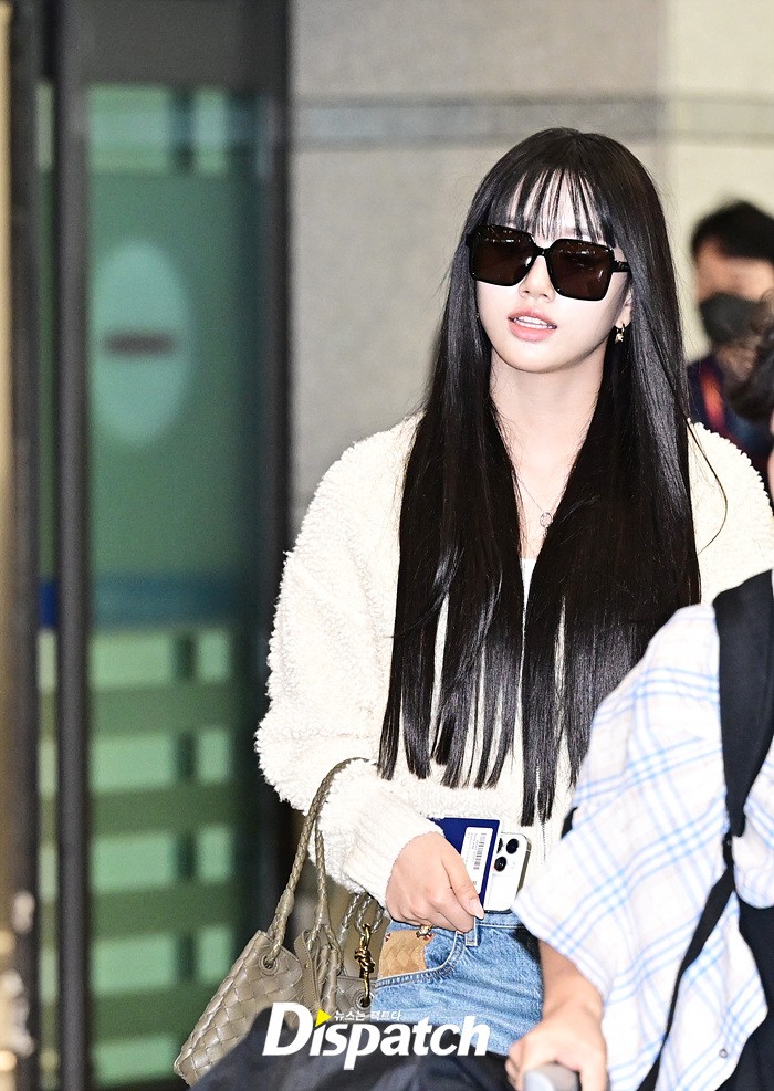 수인은 화이트 컬러의 니트와 데님진으로 캐주얼한 공항패션을 연출했다. 장시간 비행에도 눈부신 미모가 돋보였다.