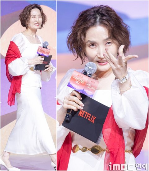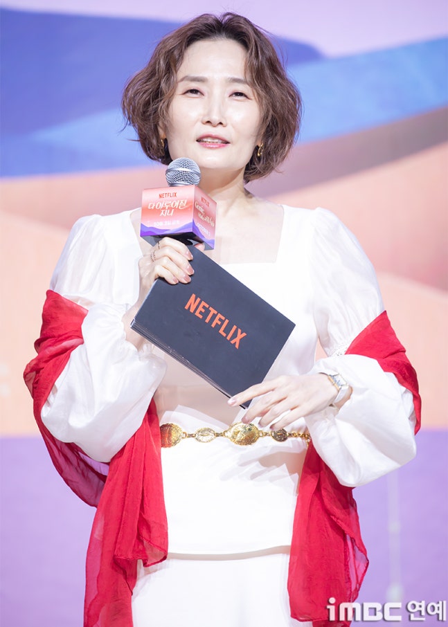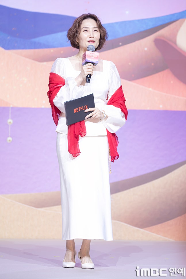 MC 박경림이 29일 오후 서울 강남구 역삼동 조선 팰리스 강남 호텔에서 열린 넷플릭스 시리즈 ‘다 이루어질지니’ 제작발표회에 참석해 진행을 하고 있다.