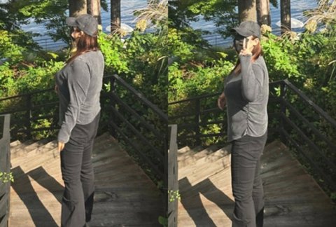 타이트한 바지를 입은 풍자는 다이어트 성공 후 한층 늘씬해진 각선미를 뽐내 감탄을 자아낸다.