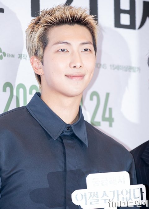 BTS RM이 22일 오후 서울 용산CGV에서 열린 영화 ‘어쩔수가 없다’ VIP시사회에 참석해 포즈를 취하고 있다.