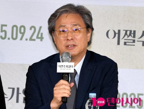 박찬욱 감독이 22일 서울 용산구 CGV 용산아이파크몰에서 열린 영화 <어쩔수가없다> 언론시사회에 참석하고 있다.