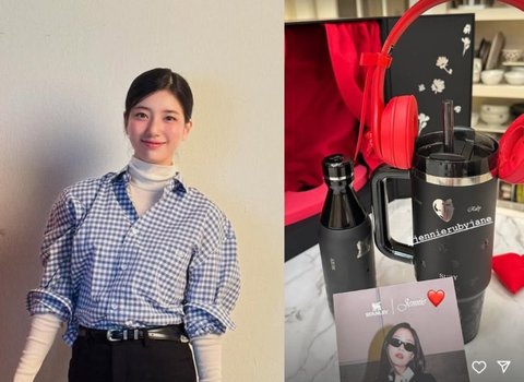 공개된 사진 속엔 제니와 브랜드의 콜라보레이션 제품인 헤드셋, 텀블러 등이 있다. 수지는 제니를 태그하며 그의 사진도 함께 첨부했다.
