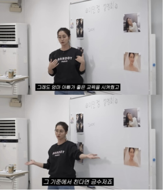 앞서 이민정은 또 다른 영상 ‘이민정 인생 설명회’를 통해 소위 ‘금수저’라는 세간의 시선에 대해서도 솔직히 답한 바 있다. 그는 “할아버지와 외삼촌이 미술 쪽에서 대통령상을 받으셨고, 남극기지 연구원으로 카이스트 교수도 계셨다. 그런 이야기는 사실”이라며 가정 배경을 인정하면서도 “경제적으로 늘 풍족했던 것은 아니었다. 아빠에게도 힘든 시기가 있었고, 나 역시 20대에 ‘돈을 벌어야겠다’고 결심했다”고 고백했다. 그러면서 “부모님 덕에 부족하지 않게 하고 싶은 건 할 수 있었지만, 흥청망청할 수 있는 금수저는 아니었다”고 선을 그었다.