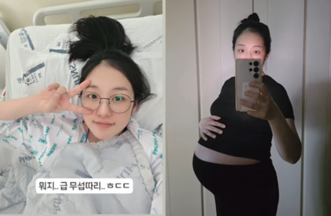 공개된 사진에는 병실 침대에 누워있는 박보미의 모습이 담겼다. 둘째 출산 예정일을 앞두고 병원에 입원한 것. 사진 속 박보미는 출산이 코앞으로 다가온 상황에 긴장감을 드러내면서도 브이(V) 포즈를 취하며 카메라를 향해 밝게 미소짓고 있다.