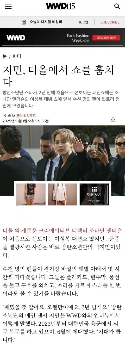 파리 디올패션쇼 참석한 지민