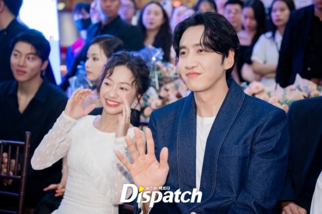 이날 프리미어 행사에 참석한 이광수는 데님 재킷과 블랙 팬츠로 멋을 냈다. 주연배우 황하와 다정한 포즈를 취하며 남다른 호흡을 자랑했다.