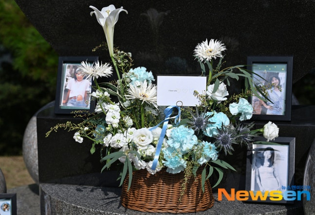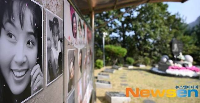 10월 2일 경기도 양평군 서종면 갑산공원 故최진실 묘역에 붙여진 생전 사진들.딸 최준희는 기일 전날인 1일 꽃다발을 들고 묘소를 찾았다. 그는 자신의 소셜 미디어를 통해 "너무 바빠서 자주 못와 미안해. 오늘도 그날처럼 날씨가 너무 좋다! 내가 와서 기분 좋은가 봐. 나 혼자 엄마에게 꽉찬 사랑을 남기고 가"라는 글과 함께 사진을 공개했다. 엄마는 물론, 함께 잠든 삼촌 故최진영에게도 꽃바구니를 선물했다.