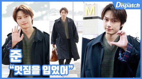 '세븐틴(Seventeen)' 준이 잘생긴 비주얼은 물론 멋진 공항패션을 선보이며 출국장으로 향했다.
