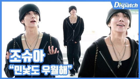 이날 조슈아는 머리부터 발끝까지 올블랙 룩으로 힙한 분위기를 풍기는 동시에 환한 미소와 손인사로 러블리한 매력을 더했다.