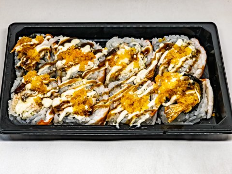 중심엔 새우튀김이 있고 겉에는 새우초밥 형태로 되어 있다.